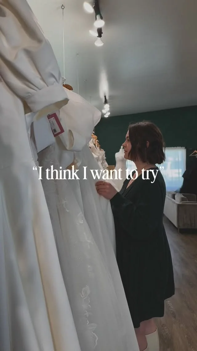 You have an idea of what your dream wedding dress will look like, but you can’t seem to find it in any store you’ve been to. Book a custom design consult to make your dress idea come to life. Work one-on-one with our owner, Liz, to create the design of your dreams and make it become a reality. This process can take some time, so booking a minimum of 12 months in advance is recommended.